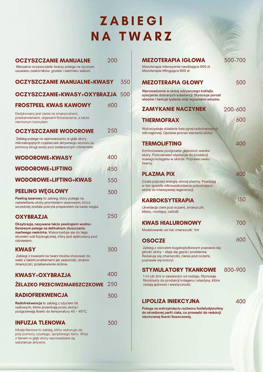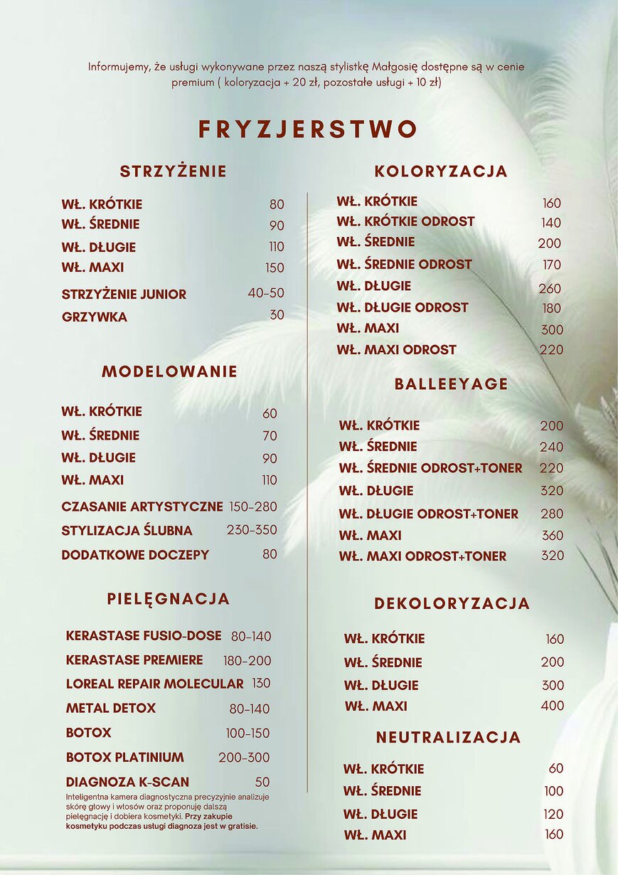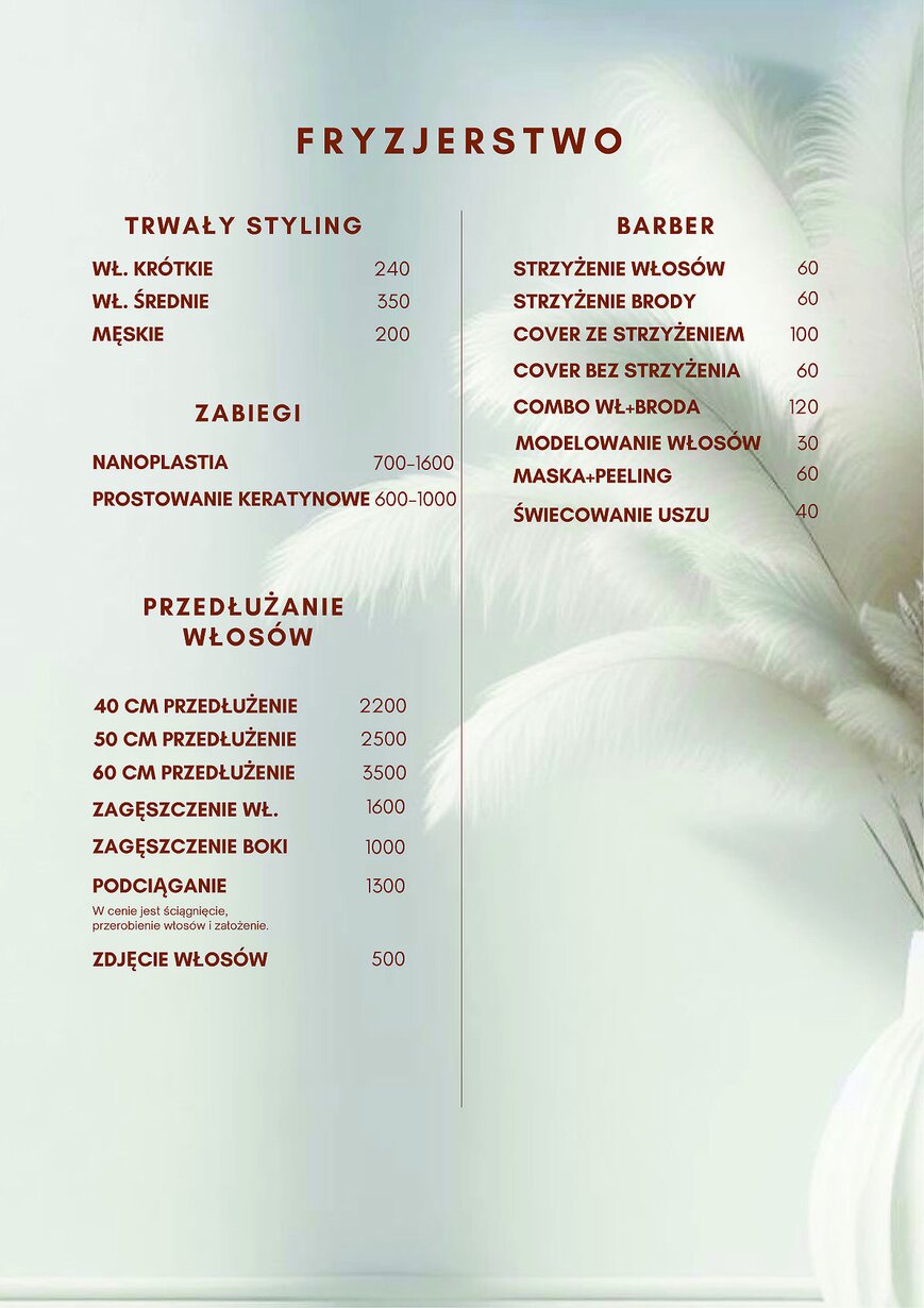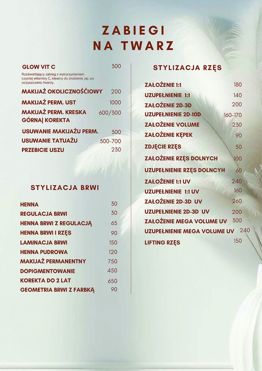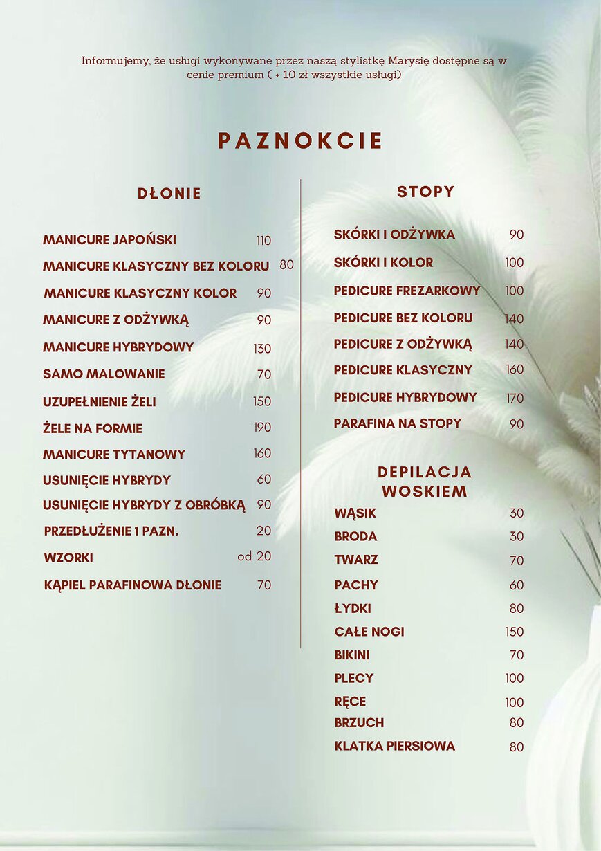 Cennik Usług - Studio Stylizacji i Urody w Nakle nad Notecią - Studio Stylizacji i Urody Jolanty Madaj
