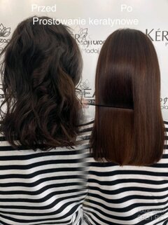 Keratynowe prostowanie włosów to zabieg chemiczny polegający na wprowadzeniu keratyny do wnętrza włosa, tak aby uzupełniła ona ubytki w jego strukturze. Poza pogrubieniem oraz uelastycznieniem, włosy stają się gładkie, proste oraz zyskują piękny, zdrowy wygląd. Efekt utrzymuje się na włosach 3-4 miesiące. Nanoplastia to technika prostowania oparta na nanotechnologii - to inaczej nanoplastyka włosów. Ta nowatorska nauka pozwala manipulować materią już na poziomie atomów i cząsteczek wnikających w strukturę włosa. Efekt? Włosy wyprostowane i wygładzone niczym tafla bez konieczności użycia chemicznych substancji, takich jak formaldehyd. Jeśli więc szukasz bezpiecznego sposobu na idealnie gładkie, lśniące i proste włosy przez długi czas, zabieg nanoplastii może być świetnym rozwiązaniem.