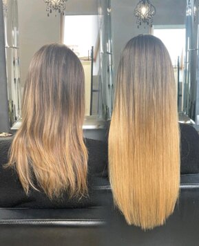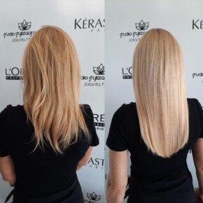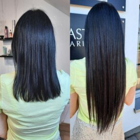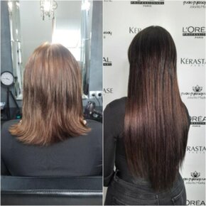 Wybierz najmniej inwazyjną metodę, dostępną w naszym salonie - metodę keratynową. Przedłużanie włosów wykonuje wykwalifikowana fryzjerka, która ma wieloletnie doświadczenie oraz nieustannie szkoli się w technikach doczepiania włosów. Co ważne stosujemy wyłącznie najwyższej jakości 100% naturalne włosy słowiańskie.